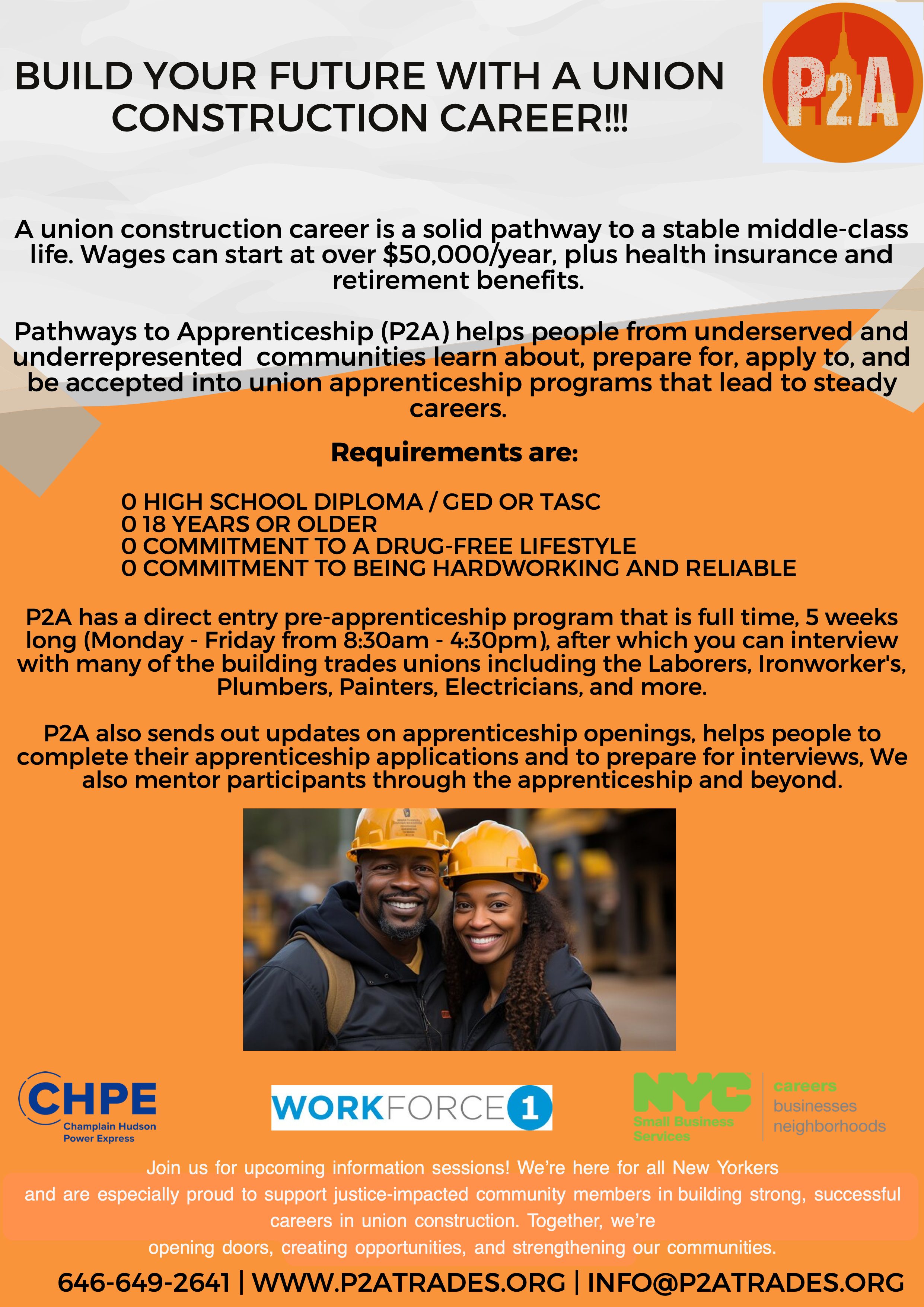 P2A works directly with community partners and organizations such as Workforce One, Osborne Association, Center for Employtment Opportunity (CEO), and The Fortune Society. Our partnership allows us to provide training free of cost to re-entry justice-involved and low-income communities. Throughout the year we will provide these trainings by way of an interview selection process.